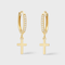 Cross Charm Diamond Huggie Earrings in 14K Gold - 0.09 Carats