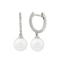 Graceful sophistication meets modern design in these pavé huggie earrings, handcrafted in 14K white gold and adorned with freshwater pearl drops. A line of white round diamonds traces each huggie, adding delicate brilliance that enhances the soft luster of the pearls.